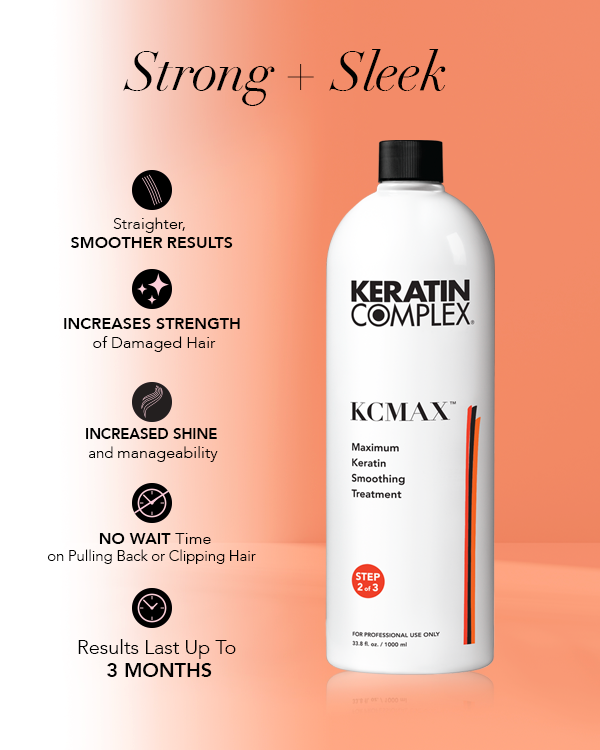 Our most powerful keratin treatment to date: KCMAX™ Maximum Keratin Smoothing System. This transformative three-step system combines a proprietary keratin blend with the most advanced smoothing technology to deliver straighter, smoother and healthier hair that lasts up to 3 months.