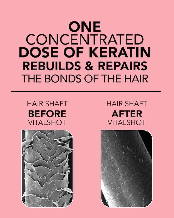 VITALSHOT is a simple add-on for all coloring and lightening processes, eliminating the need to change color formulations or extend processing times, and it doesn’t leave any lasting residue on the hair.